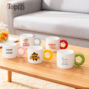Topjlh Sublimation Blanks Sunflower Handle Ceramic Mugs LOGO Cups Personalized Drinkware Tea Time Events Housewarming Presents