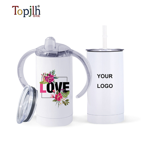 Topjlh Wholesale 12oz Straight Skinny Blank Stainless Steel Baby Sippy Cup Kids Sublimation Tumbler With Straw
