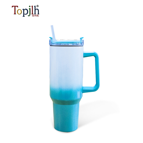 Topjlh 40oz Double Walled Sublimation Blank Stainless Steel Tumbler Gradient Colorful Cup with Handle Lid and Straw for Home Use