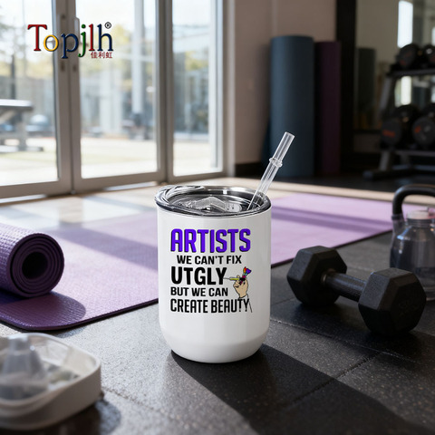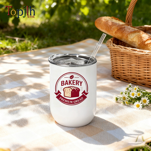 Topjlh 12oz Vacuum Insulated Sublimation Mug Egg Shape 304 Stainless Steel Thermo Cup with Straw for Custom Branding Daily